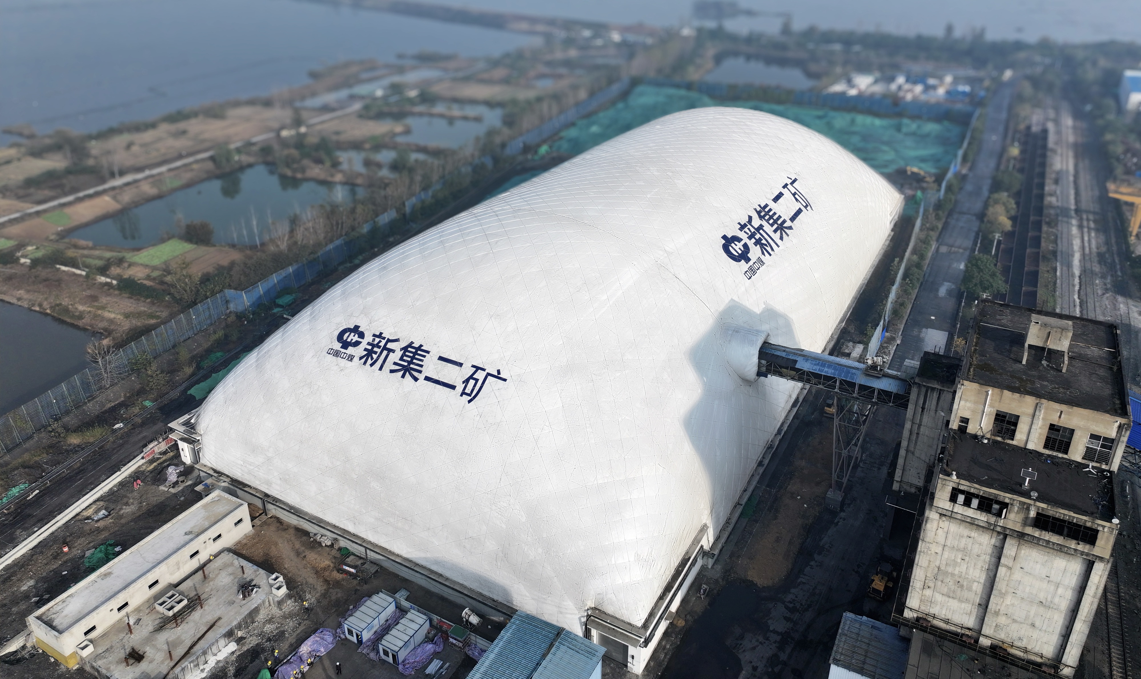 据悉,该储煤场采用高强度PVDF膜材与智能充气系统,打造全封闭无泄漏空间,实现“储煤不见煤”的环保目标。其内部无梁无柱设计提升空间利用率30%,搭配PLC智能监控系统,兼顾安全与高效运营,且建设周期、成本显著低于传统钢结构煤棚,是绿色发展与科技创新深度融合的实践典范。项目的顺利推进,将为矿区环保升级注入强劲动力,为煤炭行业清洁转型提供有益借鉴。
