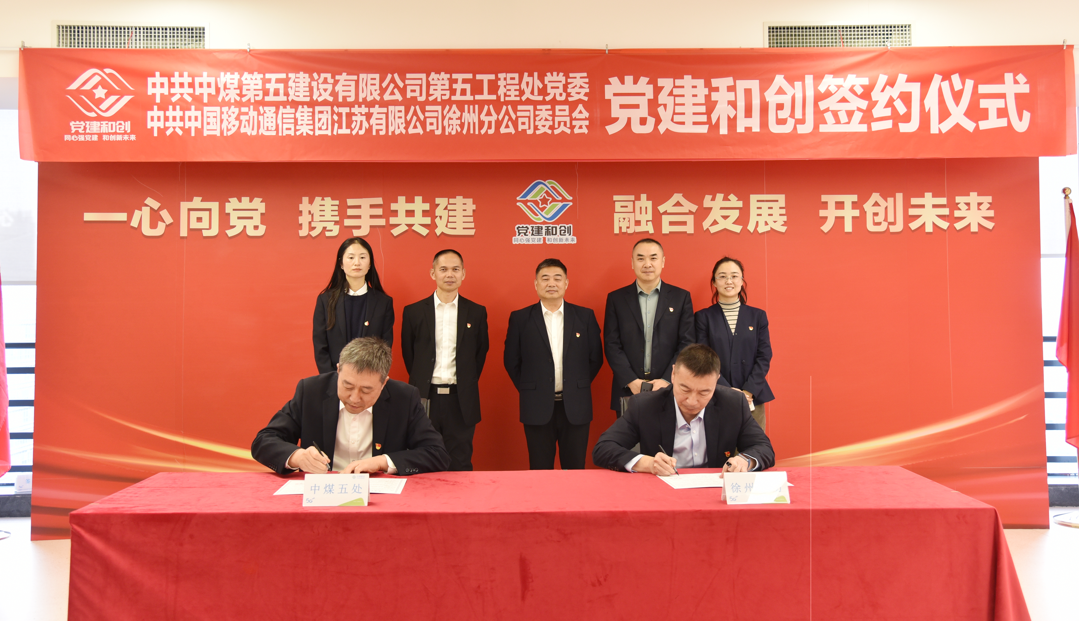 活动最后,五处党委与中国移动通信集团徐州分公司党委共同签订了“党建和创”协议。双方将以党建为纽带,以共建共享为基础,以合作共赢为目的,以“党建和创”主题实践活动为平台,有效整合在党建、业务、文化、宣传阵地等不同方面的资源优势,通过理论同学、组织同建、品牌同筑、服务同行,增强基层党组织政治功能和组织力,提升党建工作质量,助推企业高质量发展,为更好地服务地方经济和社会发展,提升社会影响力做出贡献。