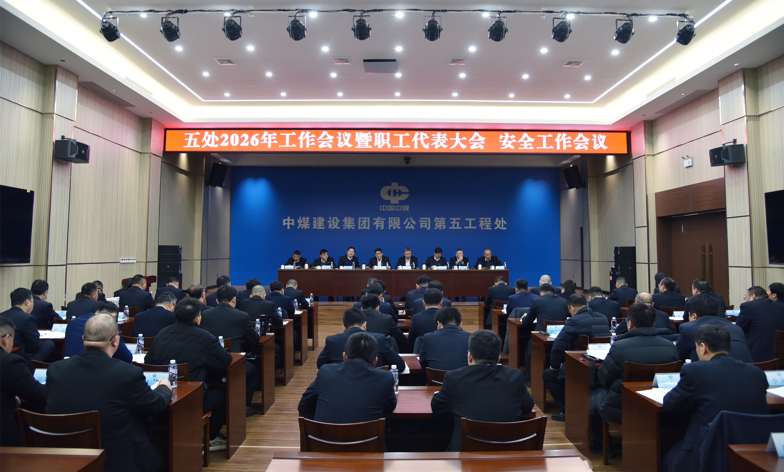 2月12日,五处召开2026年工作会议暨职工代表大会、安全工作会议。会议传达学习两级集团会议精神,全面总结2025年以来主要工作,分析研判面临的形势任务,安排部署2026年重点工作,为获表彰的先进集体、先进个人代表颁奖,签订年度经营业绩责任书、安全环保责任书、党风廉政建设责任书。处长杨金才作行政工作报告,党委书记袁志科作党委工作报告,总会计师黄兴得作财务工作报告,副处长、工会主席苗成森宣读先进集体、先进个人表彰决定,副处长沈春华作安全工作报告,总监李志中、副处长蒋尊涛、庄峰出席会议,总工程师谌喜华主持会议。