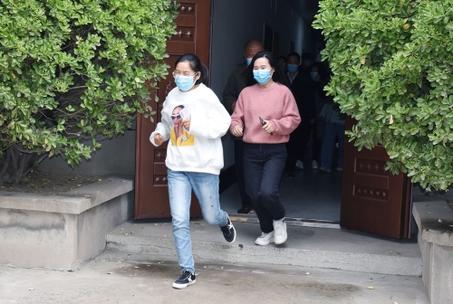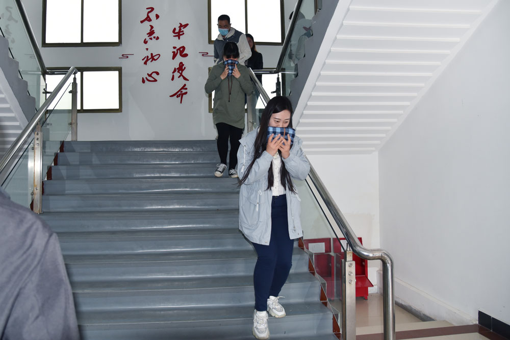 13:31,办公楼人员听到火警后,互相提醒,有序从办公楼撤离至安全地点(篮球场),按部室整齐列队。